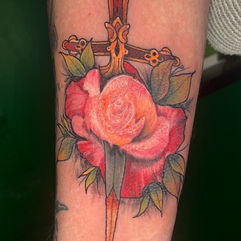 Co-founding Sacred Fury was really important to me. I wanted to help build a space that feels safe, calm and genuinely welcoming - somewhere people can relax and feel looked after. It also means a lot to be able to create a working environment that’s loving, supportive and fun to be part of. Seeing someone smile at their finished tattoo will always be my favourite part of this job.